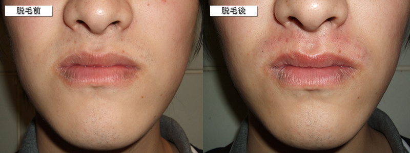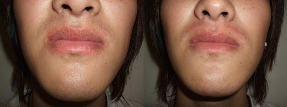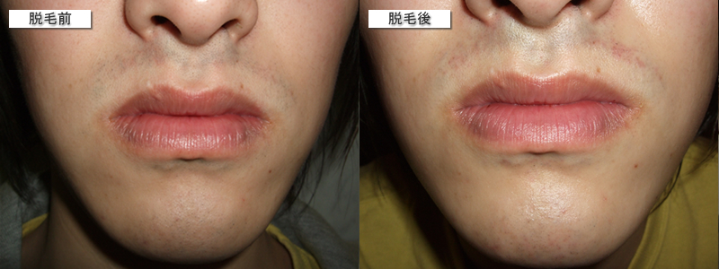 神奈川クリニックで医療レーザー脱毛をする前とした後の写真です。口周り1回/12,000円のコースを受けました。赤みはあまりでなかったものの、終わったあともかなり肌がヒリヒリしました。エステのように肌のクールダウン的なものがなく、照射がすんだら、塗り薬を塗ってすぐに帰されました。(2009年5月)