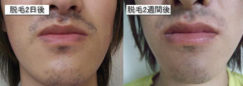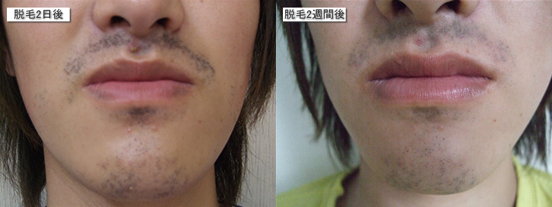 神奈川クリニックでヒゲの医療レーザー脱毛をする前とした2日後の写真です。泥棒ひげになる前の髭の濃さと泥棒ひげ状態の髭の濃さが良くわかります。